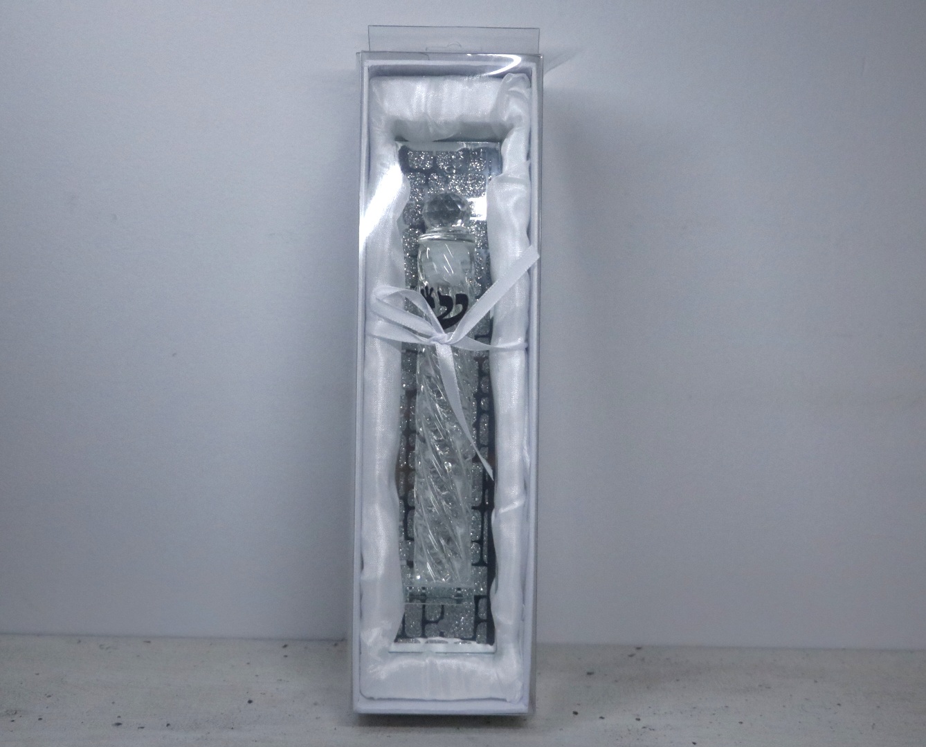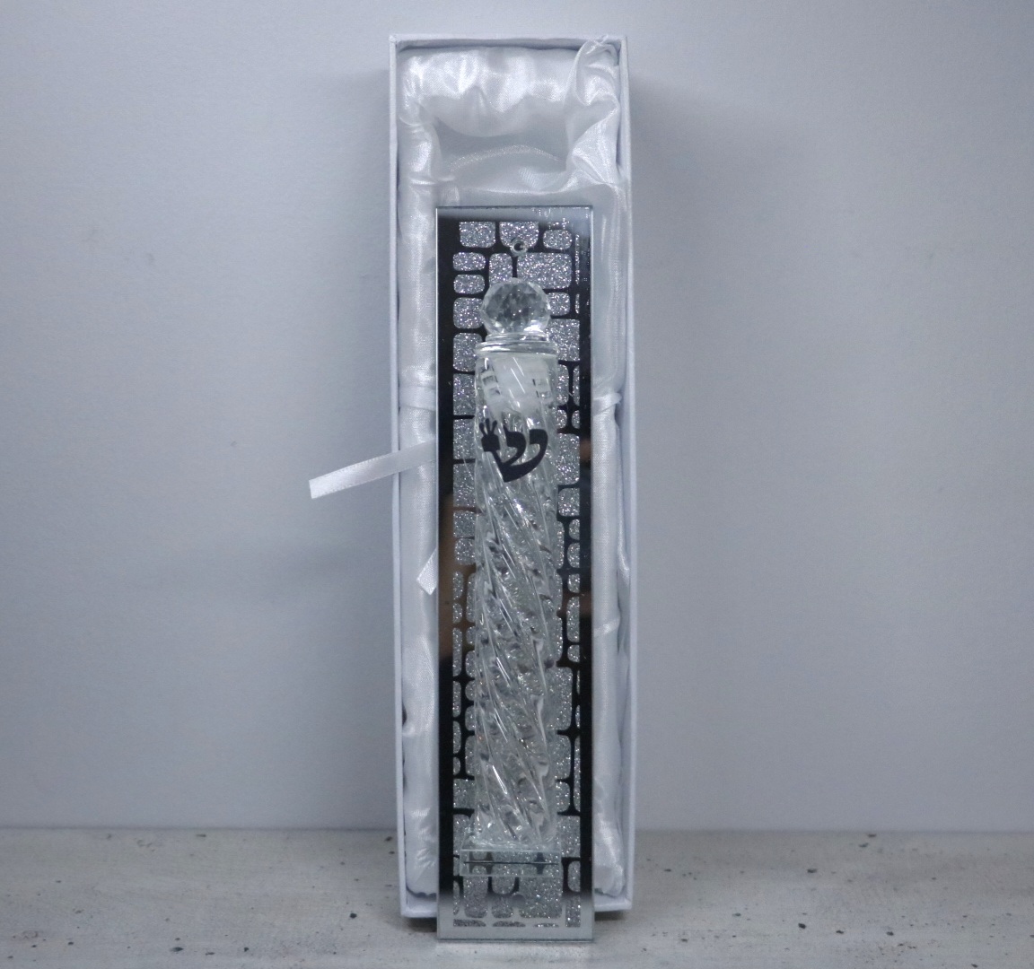 בית מזוזה מרהיב בעיצוב זכוכית יוקרתית בשילוב אלמנטים כסופים ונצנוץ עדין, המשדרים אלגנטיות וקדושה. מגיע באריזת מתנה מהודרת עם סרט לבן – מתנה מושלמת לחנוכת בית, חתונה או משרדים.