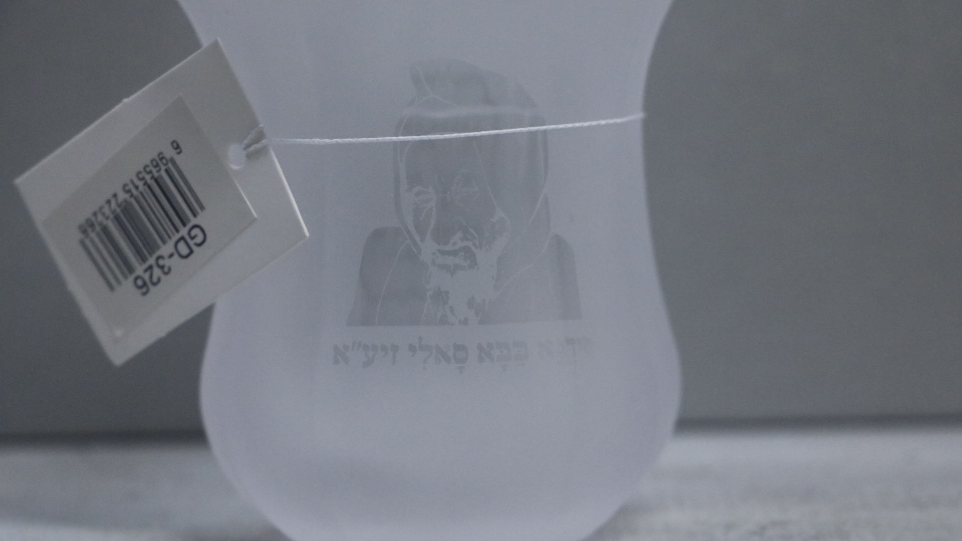 כוס קידוש חלבית בעיצוב מסורתי עם כיתוב "בורא פרי הגפן" וציור/תבליט של "באבא סאלי". בעת מילוי הכוס ביין, הכיתוב והעיצוב בולטים בצורה חדה וברורה יותר, מה שמעניק לשולחן שבת ולחגים מראה מכובד ומרשים.
