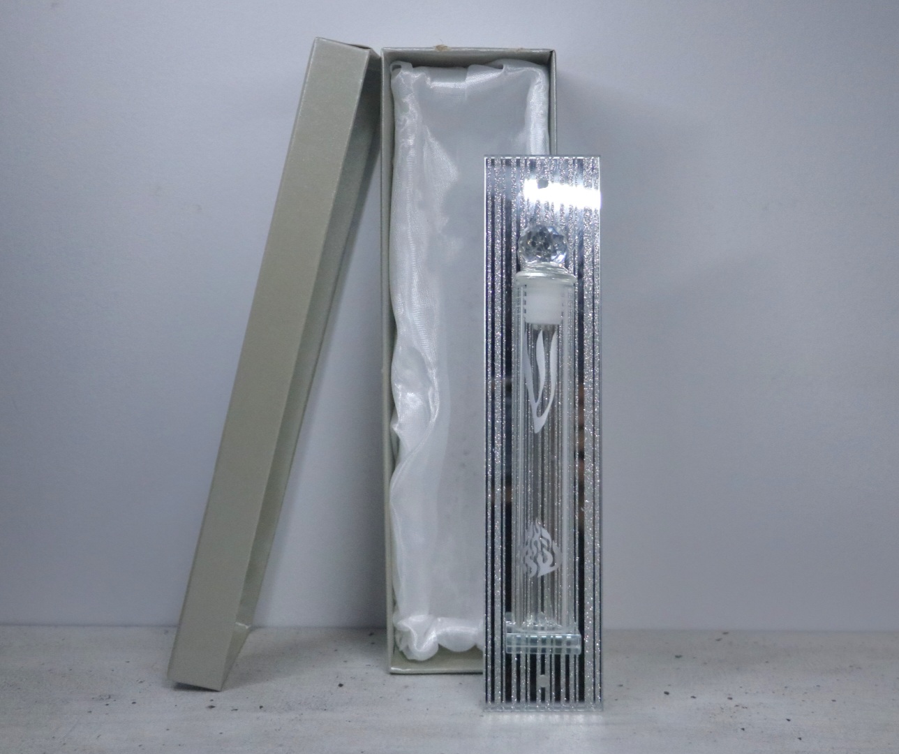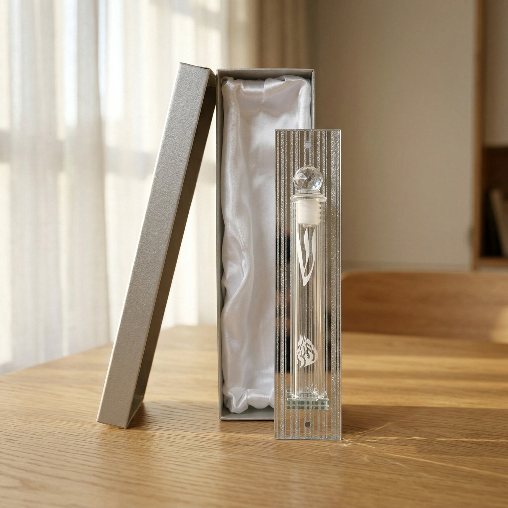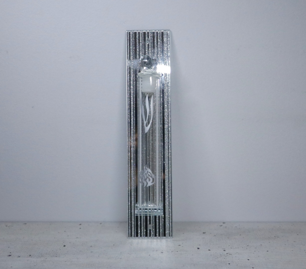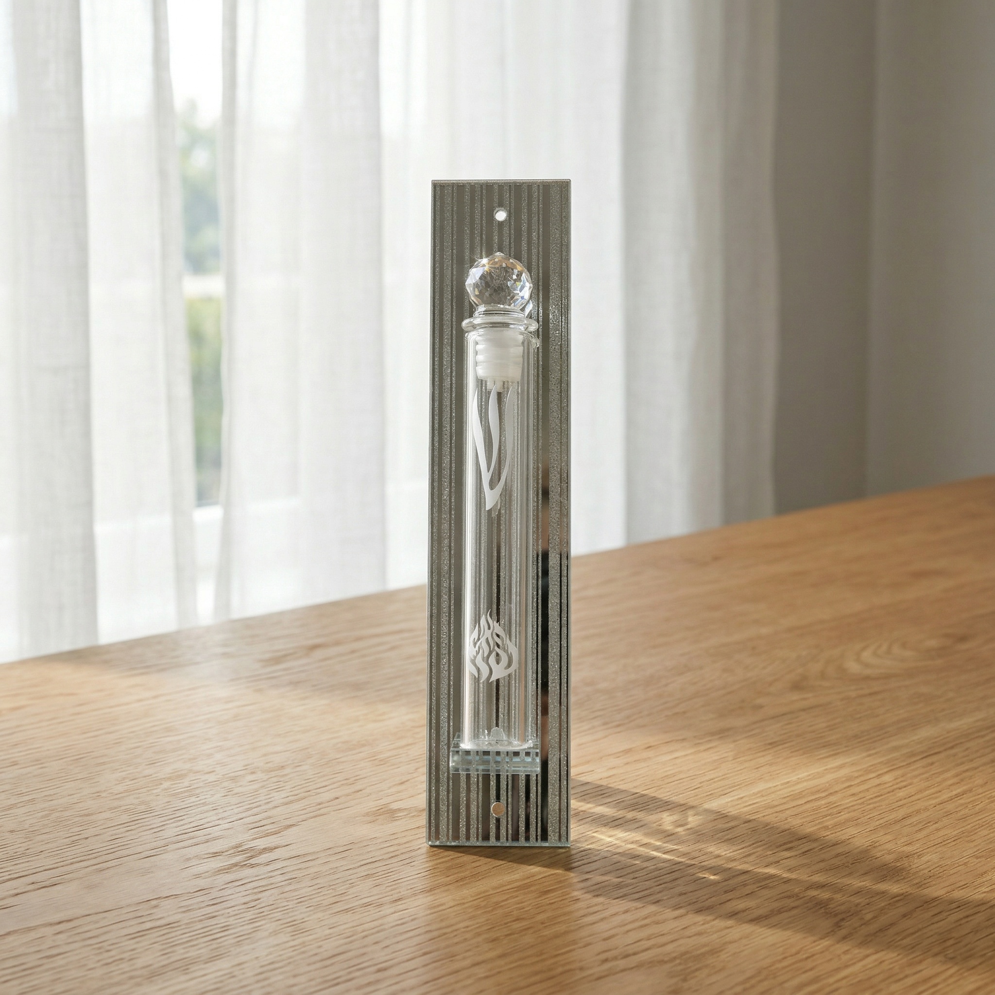 מזוזת זכוכית בעיצוב יוקרתי ומהודר, המשלבת קלאסיות ואלגנטיות. מתאימה במיוחד לבתים המעוניינים לשלב קדושה עם עיצוב מודרני ונקי.
