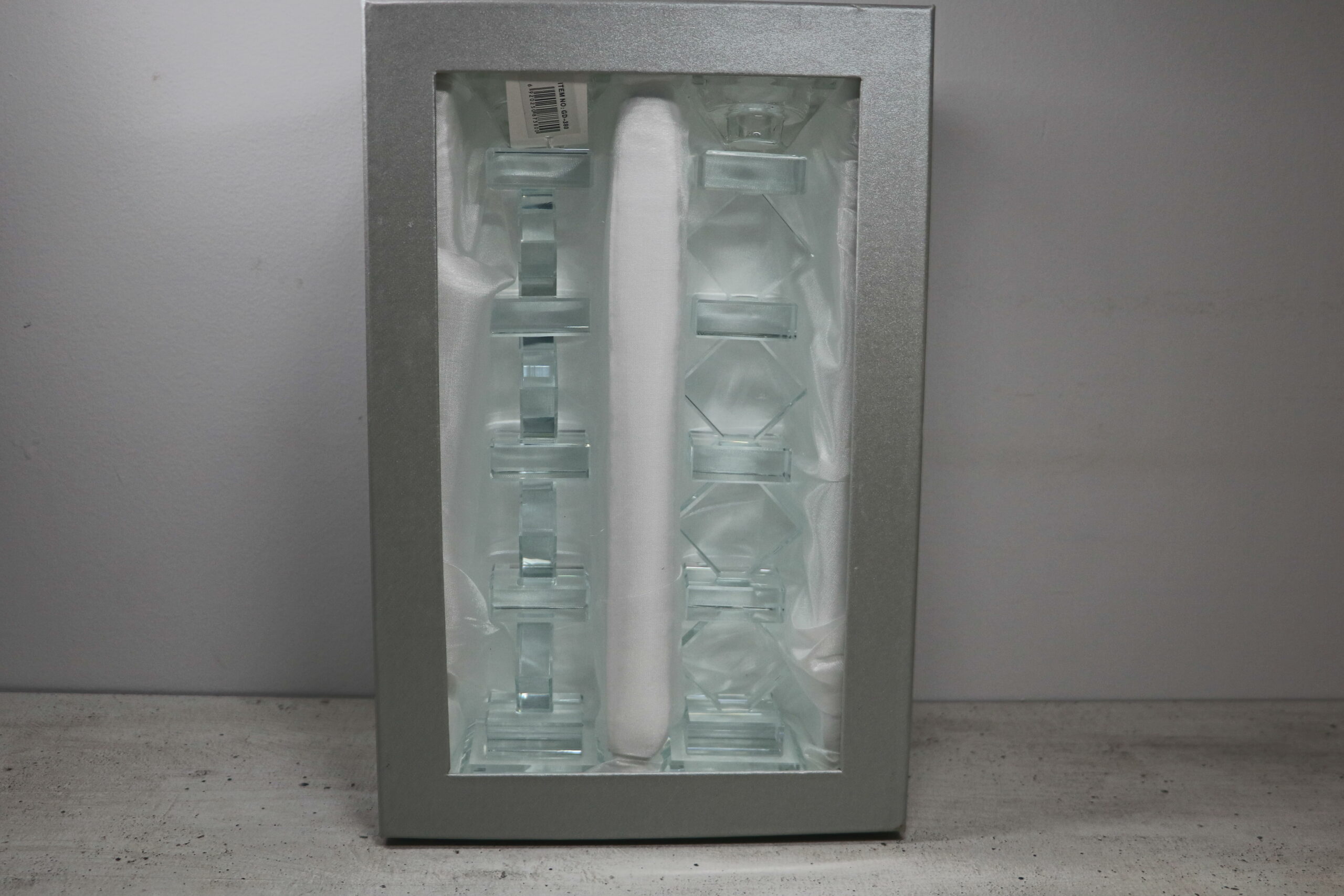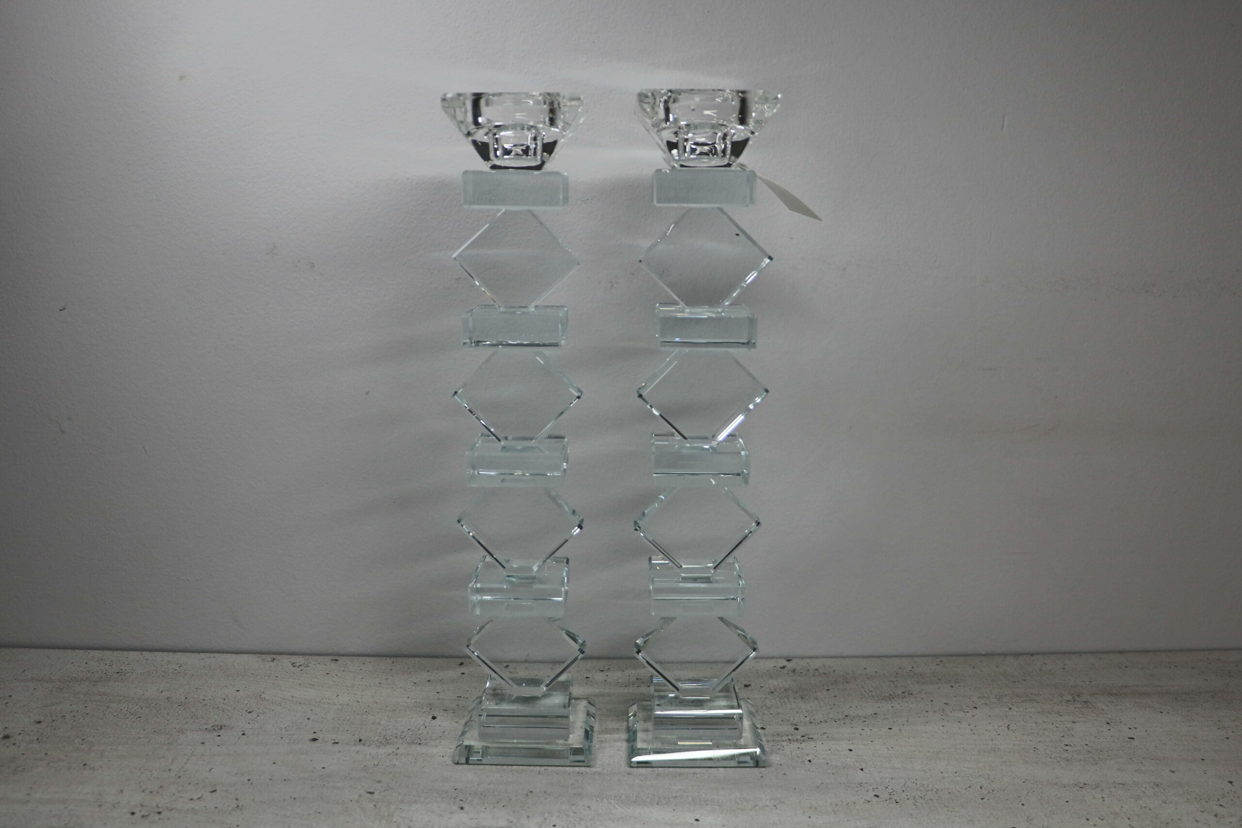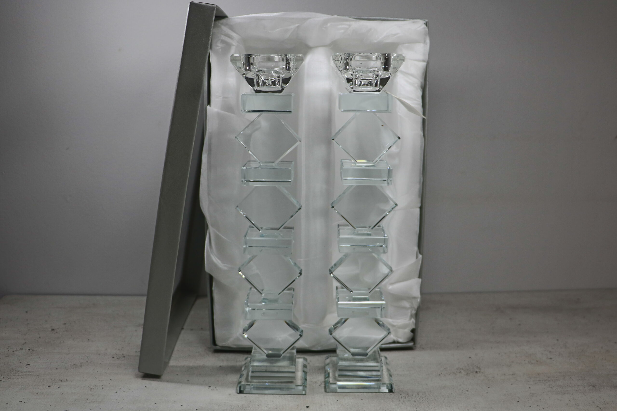 פמוט קריסטל מרשים בעיצוב משושה גבוה, המשלב קווים נקיים עם מראה יוקרתי ומודרני. העיצוב הגאומטרי מעניק תחושת עומק ואלגנטיות, ומתאים במיוחד לשבתות, חגים, אירועים ולעיצוב שולחן בסגנון מוקפד ונקי.