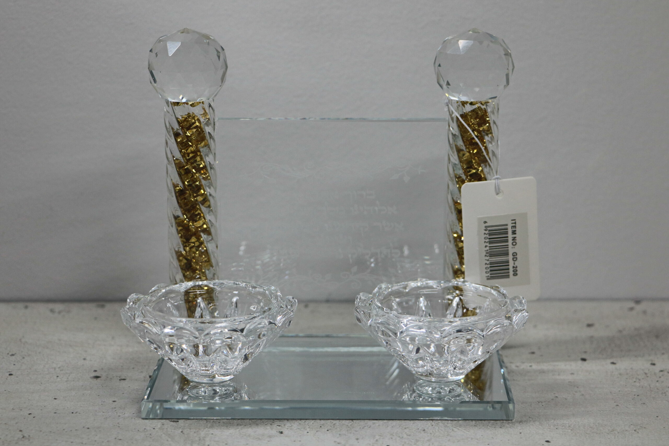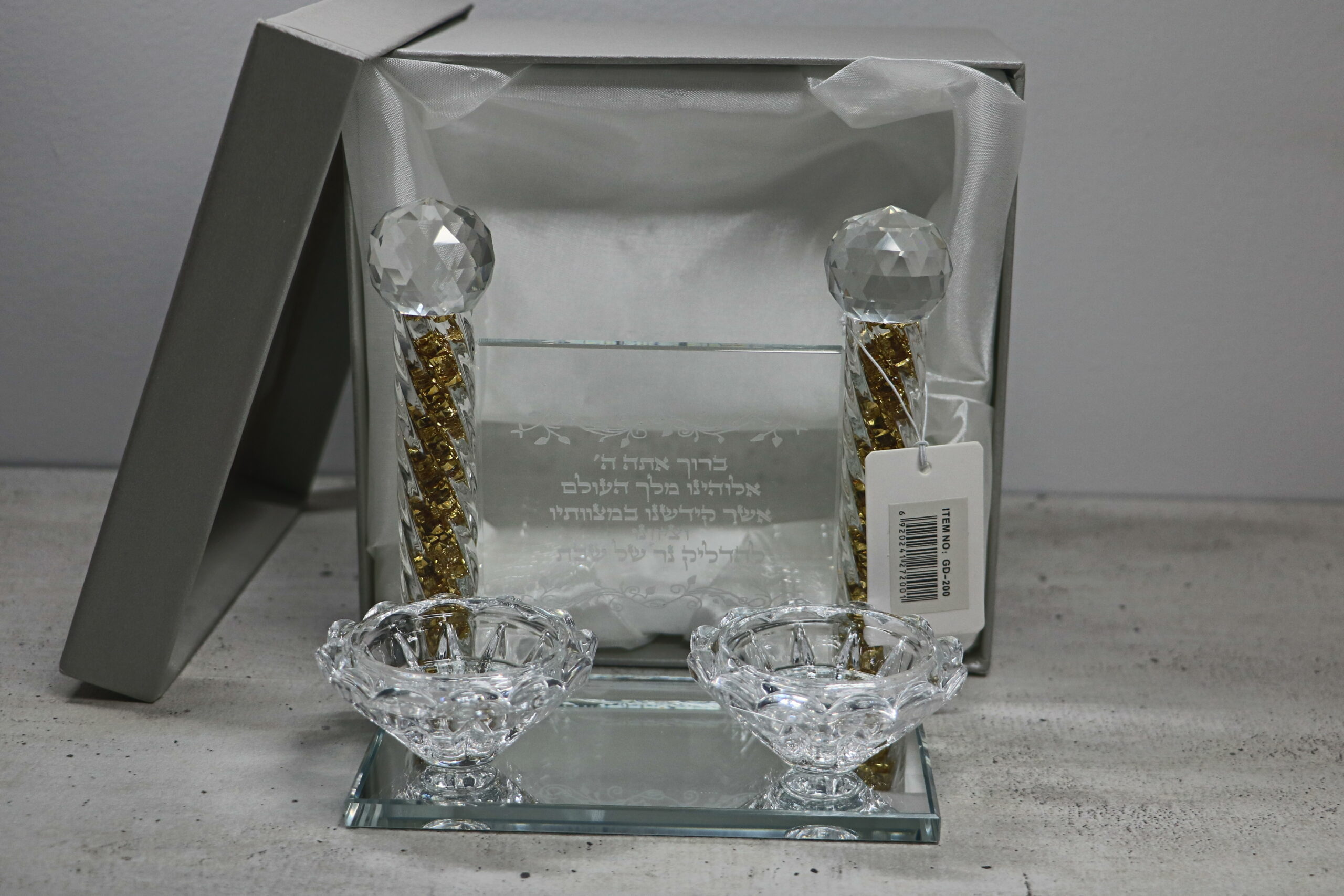 פמוט יוקרתי מזכוכית עם ברכה חרוטה, בעיצוב נמוך ואלגנטי. מתאים להדלקת נרות שבת וחג, ומשלב קדושה עם עיצוב מודרני מרשים. הפמוט מוסיף אור, שלווה ואווירה מיוחדת לכל שולחן שבת וחג.