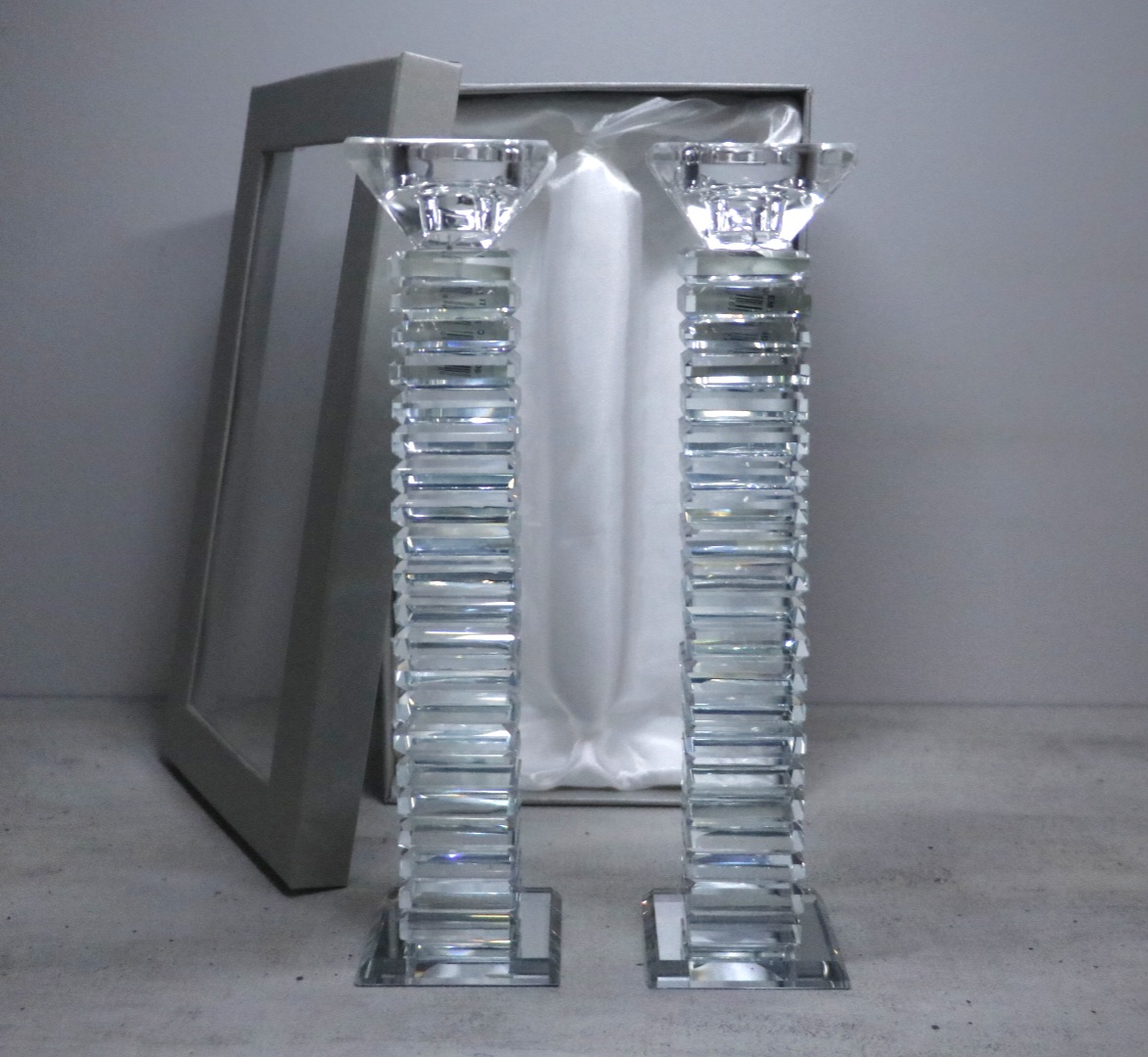 פמוט יוקרתי מקריסטל שקוף ונוצץ, בעיצוב גבוה ואלגנטי המעניק תחושת יוקרה ונוכחות לכל שולחן. מתאים במיוחד לשבתות, חגים ואירועים מיוחדים, ומשלב בין קדושה לעיצוב מודרני מרשים.