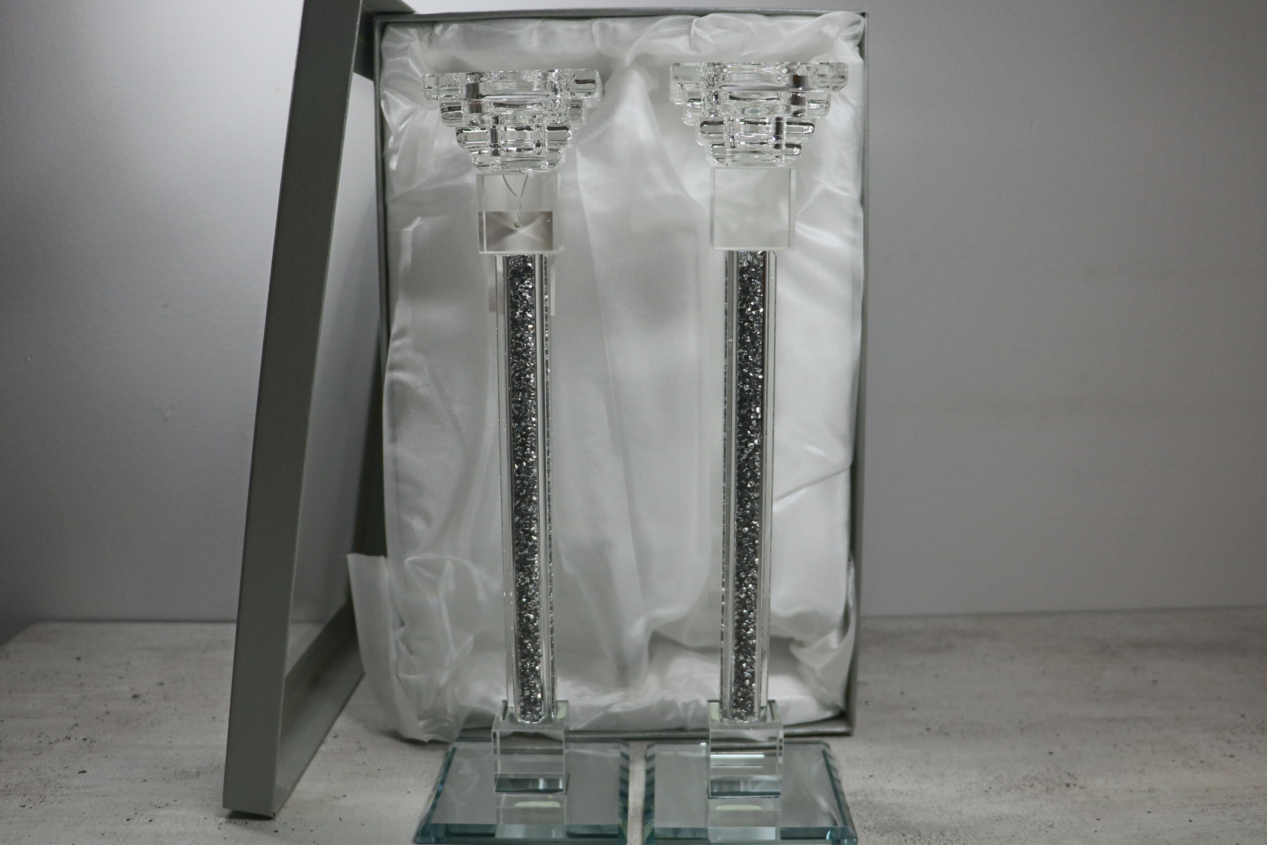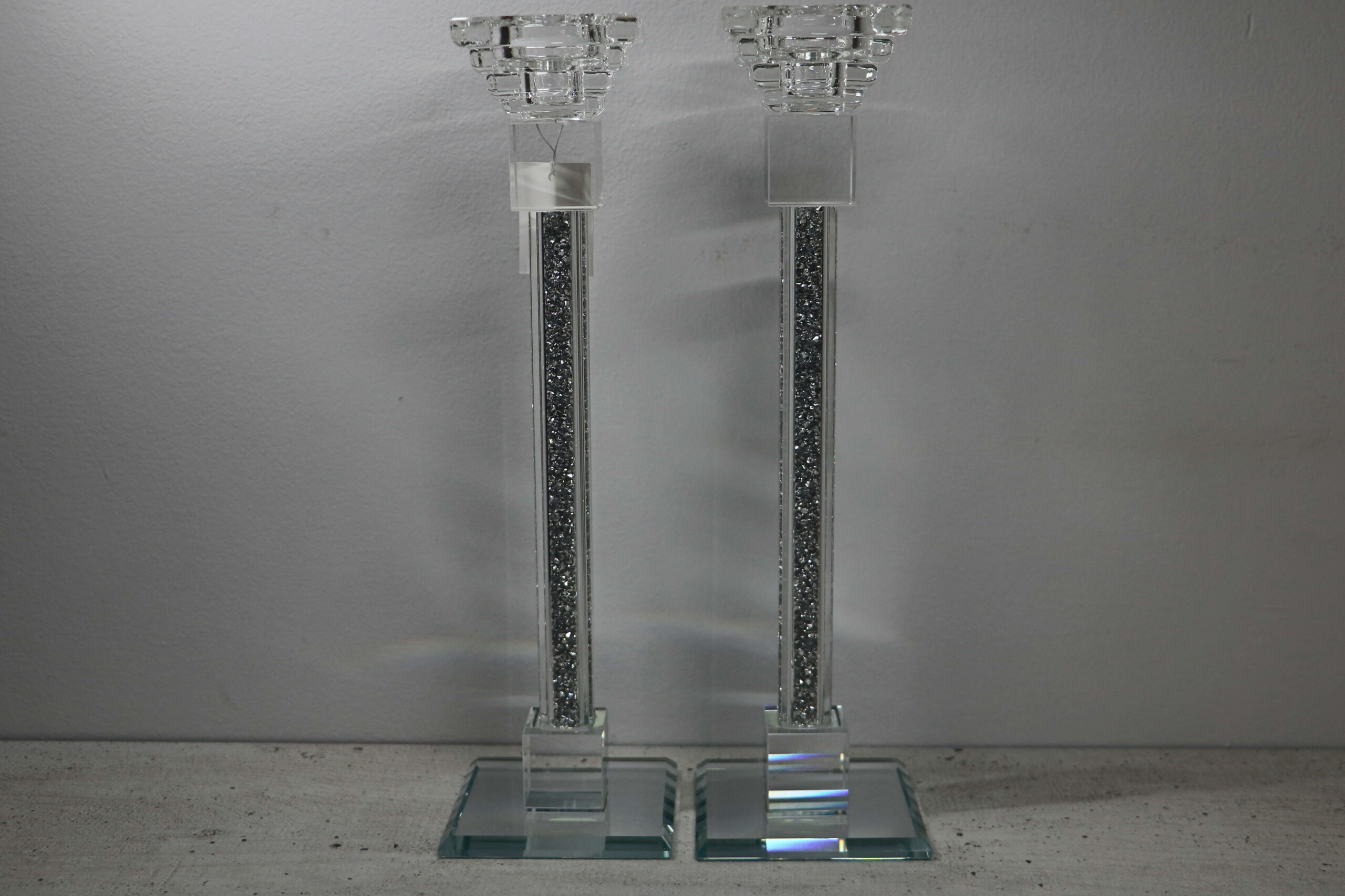 פמוט קריסטל גבוה כסף | 29 ס״מ × 6 ס״מ