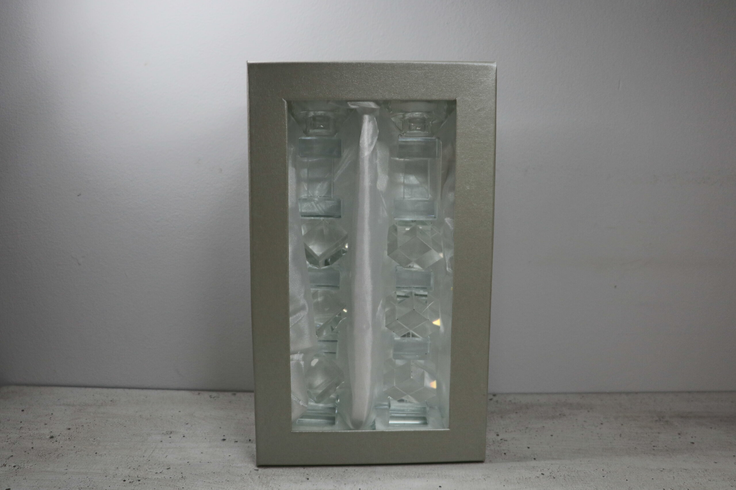 הפמוט עשוי מקריסטל עדין ושביר. יש להחזיק ולהניח בעדינות, ללא הפעלת לחץ או הרמה מהחלק העליון בלבד. אחריות אינה מכסה נזק משימוש לא תקין.